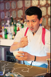 特に評判となっていたのが、Theatre and Stars Challengeのボトルサーブ。浴衣を着て日本を意識したプレゼンテーションでは、ヒノキのウッドチップを火であぶってジョニーウォーカー ブルーラベルをそこに通し、日本酒升でサーブしてゆずパウダーと和三盆のミックスしたものと一緒に飲んでもらうサービングを行いました。このプレゼンテーションに、審査員を始め会場中の人々が感動し、テイスティングの奪い合いとなっていました。
