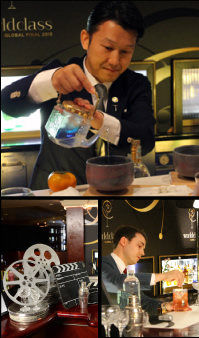 パート2の「Sensorium(センソリウム)」はザ シングルトン(シングルモルト スコッチウイスキー)のシリーズからいずれかを選び、五感すべてを満たすカクテルを創作するという非常に難しいチャレンジ。道具は自由に持ち込めるため、モロッコ代表は自国の美しい器で目を楽しませていた。宮﨑氏は審査員に目隠しするという大胆なプレゼンテーションを実行。ペドロヒメネスとバニラビターズをそれぞれ右手と左手にスプレーしたあと手を擦り合わせてもらい、シェリー樽とバーボン樽を半々使うザ シングルトン グレンオード 12年の魅力を見事に伝えた。五感すべてを満たすという難題に苦戦するファイナリストが多い中、それを期待と驚きを持ってクリアしていた宮﨑氏のプレゼンテーションは、圧巻であった。