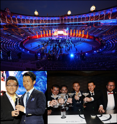 優勝は、デイヴィッド リオス氏(スペイン/The Jigger Cocktail)。スペインの闘牛場で、スペイン人の優勝というドラマチックな最後を遂げた。歴代チャンピオンと共にウイニングカクテルを創るリオス氏は、5日間の激しい戦いを終えて満足げにグラスを傾けていた。