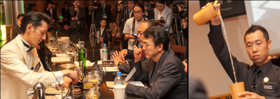 しかし、難解なコンセプトをユニークな演出でショーアップしたファイナリストも多かった。久保 俊之氏(ark Lounge&BAR/青森県)、藤井 隆氏(Bar,K/大阪府)は、禁酒法時代のスピークイージーバーをイメージした作品を小粋なトークとともにサーブ。大きな喝采を浴びていた。
