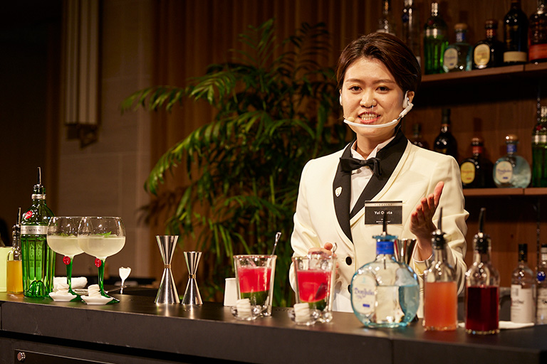 今年も例年通り、スピード&テイスト チャレンジがもっとも会場を熱くさせていた。今回は5分間で6種のカクテルを作成するが、味とバランス・カクテルの難易度・ホスティング力・バーテンディング技術、これら全てを評価され、さらに時間内にスピーディに仕上げなければならない。この重圧と張り詰めた空気は、最後の種目で彼らが疲れていようが容赦なく襲いかかる。そんな極限状態を押しのけて部門優勝をもぎ取ったのが、緒方 唯 氏(宮崎県 / Wine & Bar 麦家)だ。制限時間ギリギリではあったものの、6人の審査員との乾杯のために自身のカクテルを1杯多く作る余裕を見せた。またある選手はスピード&テイスト チャレンジと思わせないほど、穏やかなホスティンングと流れるような実技で会場を魅了した。
