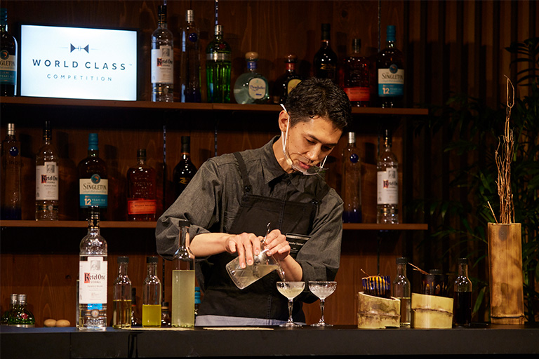 「DIAGEO WORLD CLASS」は、カクテルの味わいのみならず、バーテンダー自身のクリエイティビティ、ホスピタリティ、情熱を重視している、世界最大級*の“バーテンダーコンペティション”。今年のGLOBAL FINALの舞台は、2020年感染症の影響で幻となった彼の地、オーストラリア・シドニー。その世界大会への唯一のチケットを賭け、1次・2次審査と大勢のライバルの中を勝ち抜いてきた10名のファイナリストが5月26日・27日の2日間、激戦を交わした。今回の会場は渋谷TRUNK HOTEL。今年で13回目を迎えたWORLD CLASSは広く認知されるようになり、バーテンダーだけでなくバリスタなど他業種からも応募があるほど注目されており、JAPAN FINALISTは経験者から初出場のダークホースまで様々だ。勝者の予想など全く出来ないなか大会は始まった。* ディアジオ社調べ