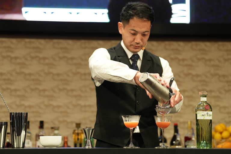 日本の茶道から英国のアフタヌーンティーまで、お茶は様々な文化の祝典に欠かせない存在。このチャレンジでは、2つのシーン(ティータイムとイブニング)でタンカレー ナンバーテンを称えた、お茶を使ったオリジナルカクテルを2種類創作。スピリッツの特徴とお茶の風味を最大限に活かしながらもオケージョンの違いを効果的に表現できるかがカギを握る。強かったのはやはり実力者であるBar LIBRE 長尾 和明氏。他を圧倒しこのチャレンジを制した。