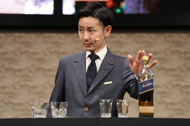 ジョニーウォーカー ブルーラベルを氷、水、または何も入れずに審査員に提供。それでもオリジナリティ・クリエイティビティ、ストーリーテリング、ホスティング力でゲストを魅了し楽しませなければならない。審査員はブランドをよく知るブランドアンバサダーと人気雑誌編集長ということもあり、選手は普段にはないプレッシャーとも戦う事となる。この難易度の高いチャレンジを勝ち抜いたのは、Hollow bar 福澤 雄二郎氏だった。