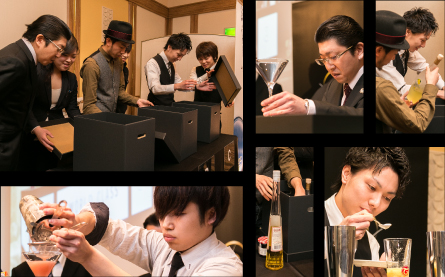 「ミステリー・ボックス・チャレンジ」グローバルトレンドに触れ、そしてバーテンダー同士の交流も深めてもらう本セミナー。その趣旨通り、聴衆として来場していた一般参加のバーテンダーの皆様がペアを組み、即興でカクテルを作るセッション「ミステリー・ボックス・チャレンジ」を実施。